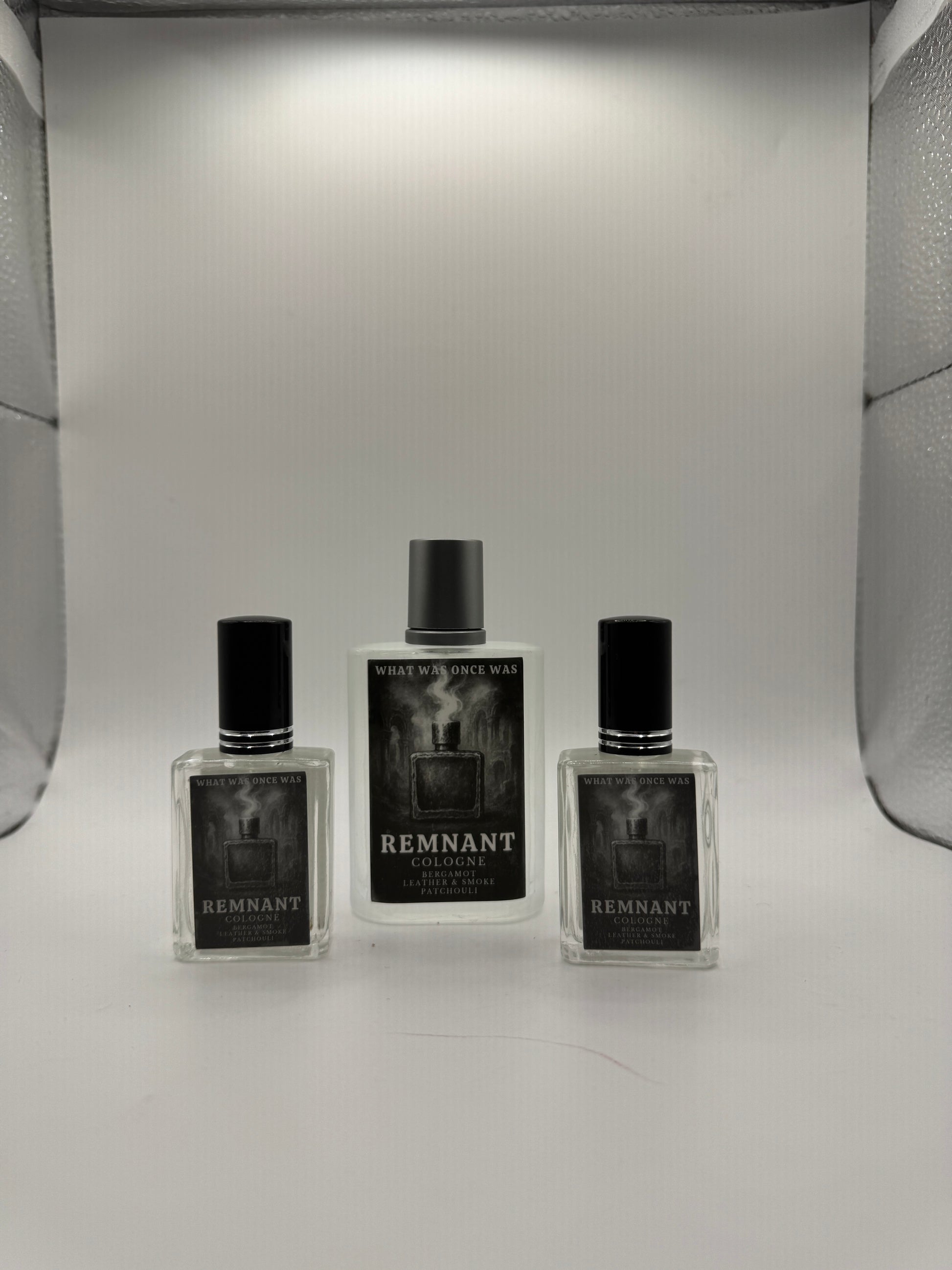 In the ashes of what was, only a trace remains. Remnant is the echo of someone who once burned brightly — now a memory steeped into the fabric of time. Smoky leather carries the weight of absence, while black currant and bergamot flicker like distant embers of who they used to be. A heart of rose and whiskey whispers their warmth, now faded. Patchouli and dragon’s blood cling to what’s left — not a presence, but the mark they left behind.